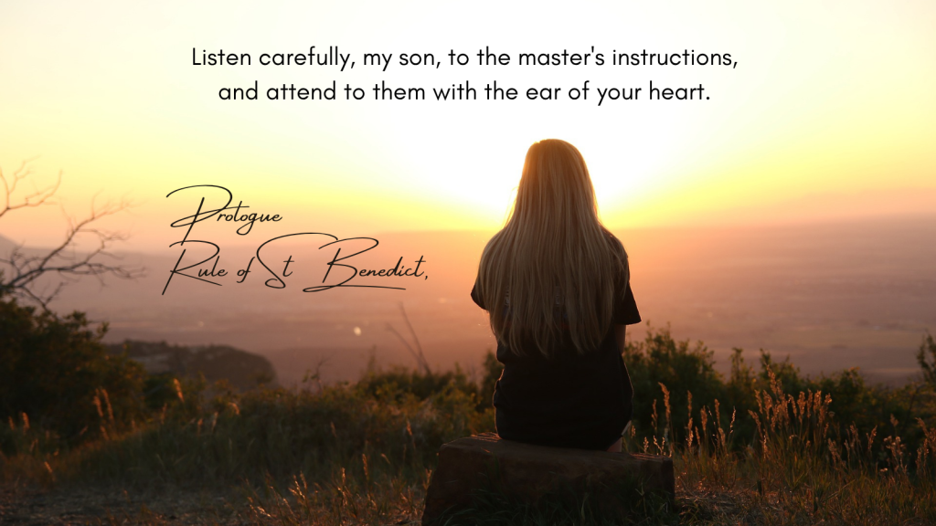 We begin the Rule with an invitation to be open in every sense of the word. We are invited to open the ear of our hearts and to listen at the very core of our being to St Benedict’s teaching. Every sentence is crafted in love.