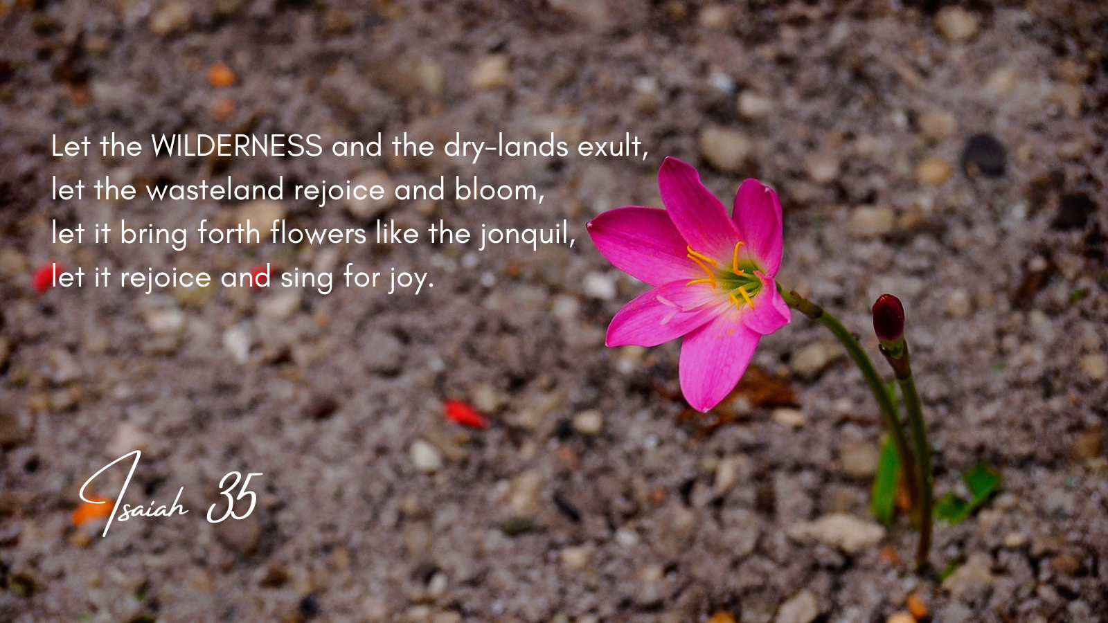 We are familiar with wilderness as a metaphor, not just in biblical literature. I am often struck by the fact that what one person experiences as ‘wilderness’ might not be experienced in the same way by another. We can help each other to see those tiny bursts of colour in what feels dry and arid in our daily lives. God can use it all.