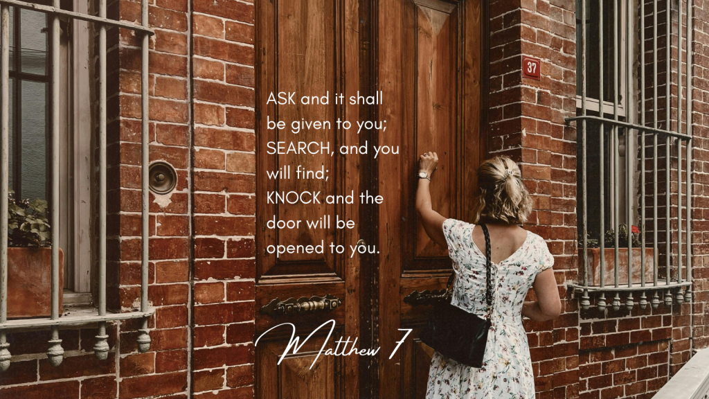 And sometimes our prayer takes us to a place where we arrive at a door and we need to knock. It’s all relational. We reach out and knock and trust that a door will be opened.