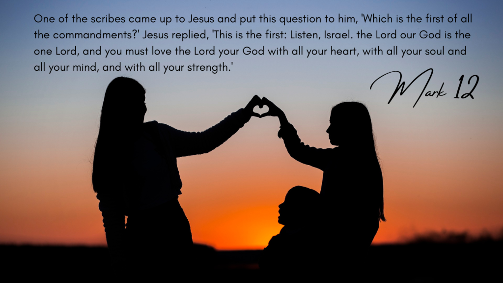 ‘One of the scribes came up to Jesus and put this question to him, ‘Which is the first of all the commandments?’ Jesus replied, ‘This is the first: Listen, Israel. the Lord our God is the one Lord, and you must love the Lord your God with all your heart, with all your soul and all your mind, and with all your strength.’