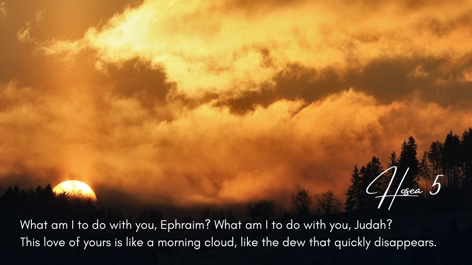 His message is uncompromising, but there is always a glimmer of hope. God promises to be faithful and that he will come to their aid is ‘as certain as the dawn.’ Israel has its part to play. The covenantal relationship relies on their co-operation. It relies on a type of love that is deep and true. But Israel is half hearted: