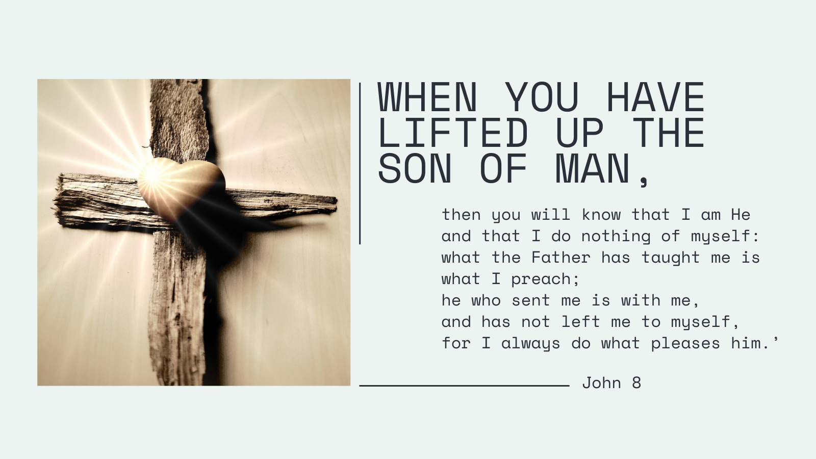 Moses’ holding up the serpent links directly with John’s important theological idea of Jesus being ‘lifted up’ on the cross. Jesus is presented as the one who brings healing through suffering and glory. When Jesus is lifted up people will see that his claims about his close relationship with his Father are true.