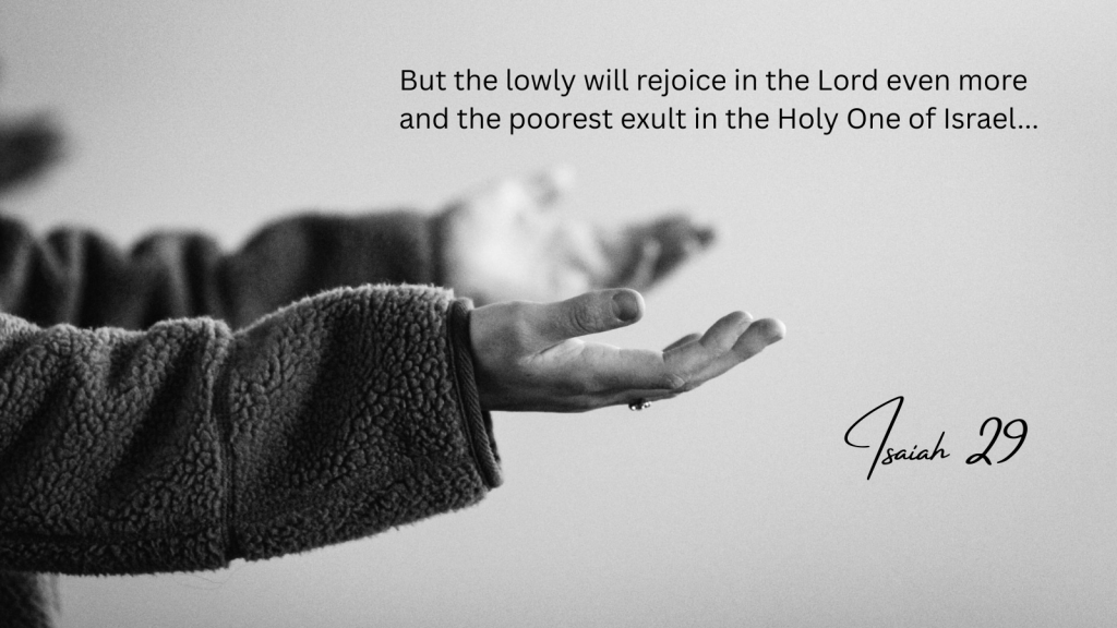 ‘But the lowly will rejoice in the Lord even more and the poorest exult in the Holy One of Israel…’