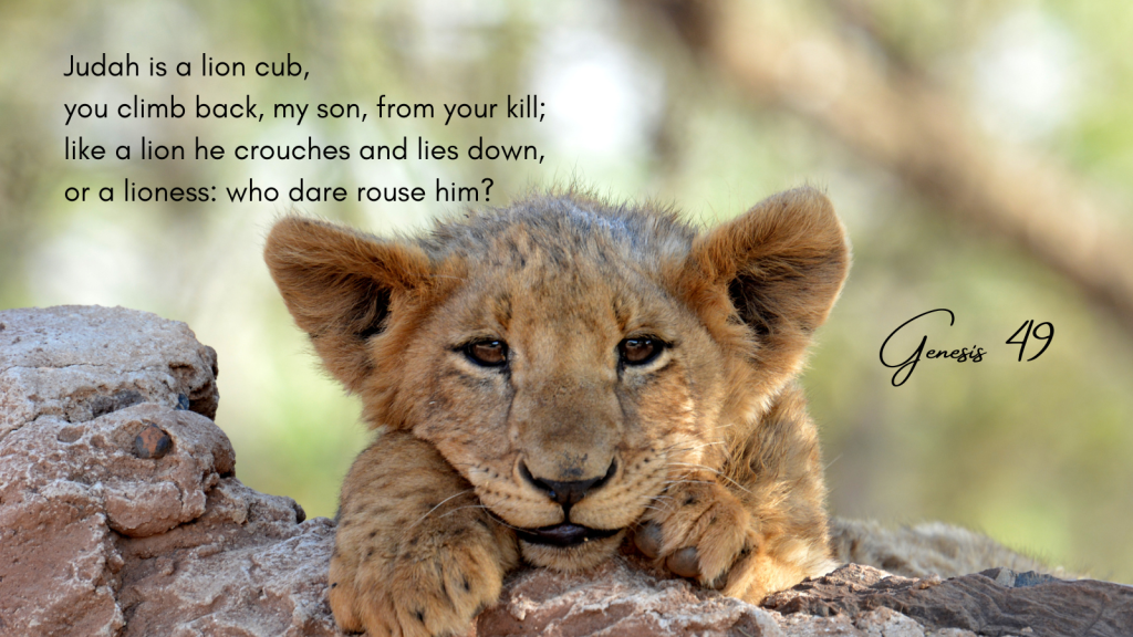 Today our text is from Genesis 49. Jacob in his old age asks his twelve sons to gather and gives each a blessing. Blessing and lineage are key intertwined themes in Genesis. In today’s reading we hear the blessing on Judah. It’s likely that the text was part of an oral tradition where the tribes would characterize each other by short sayings, often linked to the tribal name. Judah is given a lavish blessing. Using the imagery of a lion cub and a lioness Judah’s supremacy is promised. Judah will enjoy a period of prominence over the other tribes. Even the surrounding nations will be in Judah’s jurisdiction.