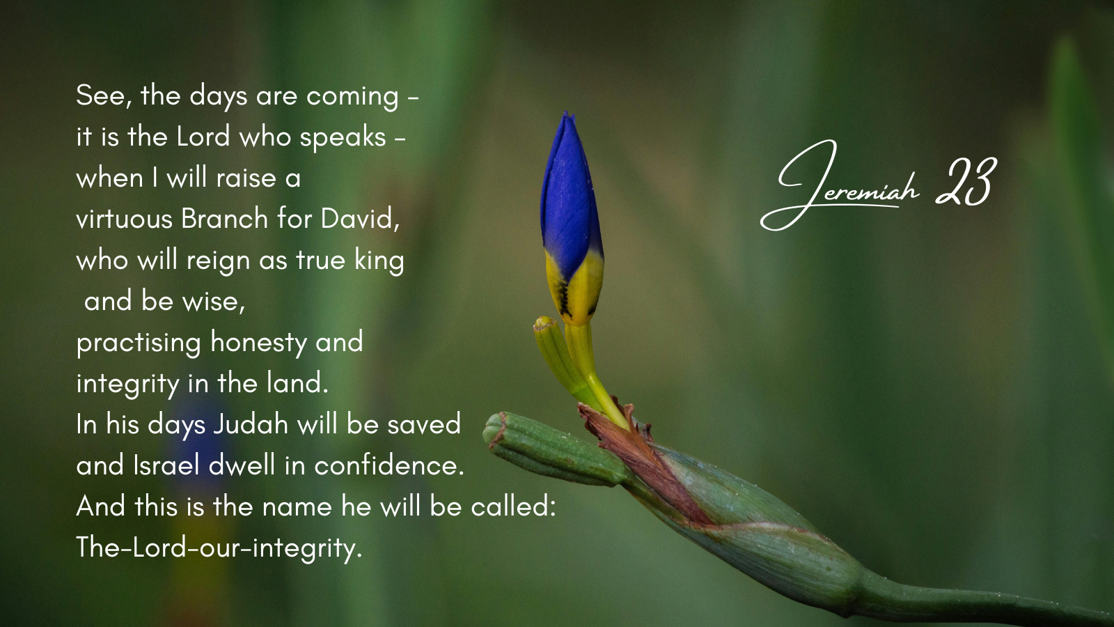 This new king will embody the love and faithfulness of God and ensure the well-being of his subjects. I am always struck by the name ‘The-Lord-our-integrity’. So many of our day to day experiences can lead to a sense of fragmentation. I believe that the human heart is always searching for wholeness and integrity. We were made for this.