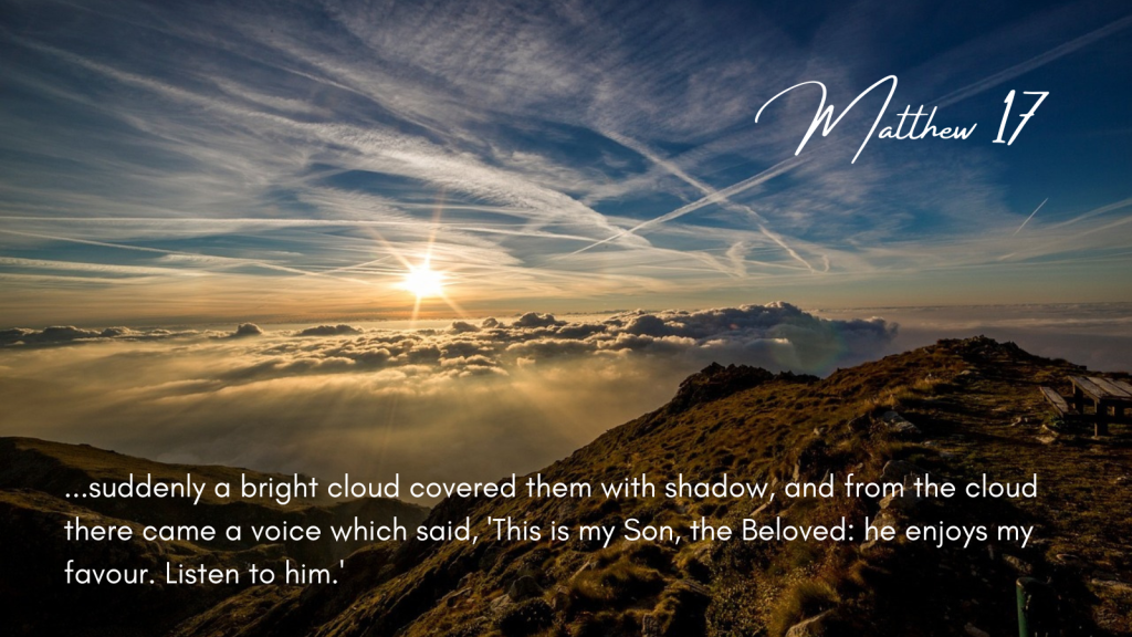 ‘This is my Son, the Beloved; he enjoys my favour. Listen to him.’