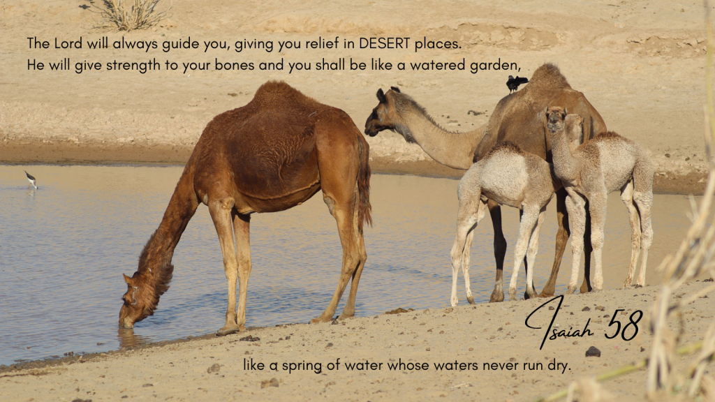 The Lord will always guide you, giving you relief in DESERT places. He will give strength to your bones and you shall be like a watered garden, like a spring of water whose waters never run dry.
