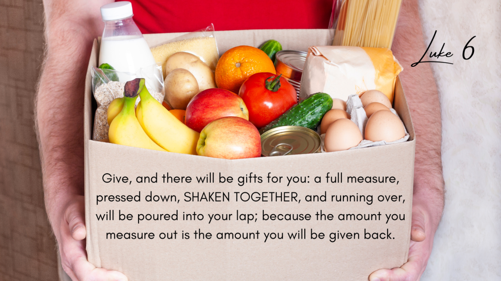 Give, and there will be gifts for you: a full measure, pressed down, shaken together, and running over, will be poured into your lap; because the amount you measure out is the amount you will be given back.