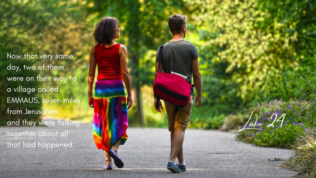 I don’t think I’ll ever tire of hearing the Emmaus story. I almost know the text by heart. I’m struck today as I sit to write this reflection just how healing a long walk with a friend can be. There is something about the rhythm of walking and being alongside another person that helps knots to unravel and allows a new perspective to open up.