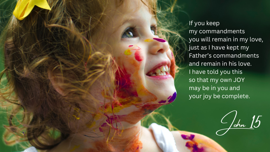 Being merry for no particular reason is one of the special gifts of childhood. The joy of one young child spreads so easily to others and to adults too. I remember as a child feeling that I might burst with joy and excitement. When you reach adulthood that joy takes on a different shape. It isn’t nearly as frequent and there might be some foreboding mixed in too. The idea Jesus might find his joy in us is something that I don’t spend nearly enough time thinking about. That Jesus wants our ‘joy to be complete’ speaks to me of the depths of the Paschal mystery: every joy and every sorrow that we experience unites us ever closer to Christ.